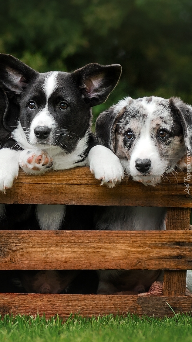 Edytor tapety: Dwa szczeniaki w skrzynce
