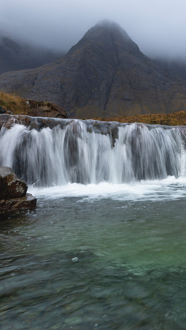 Edytor tapety: Próg rzeczny na tle zamglonej góry