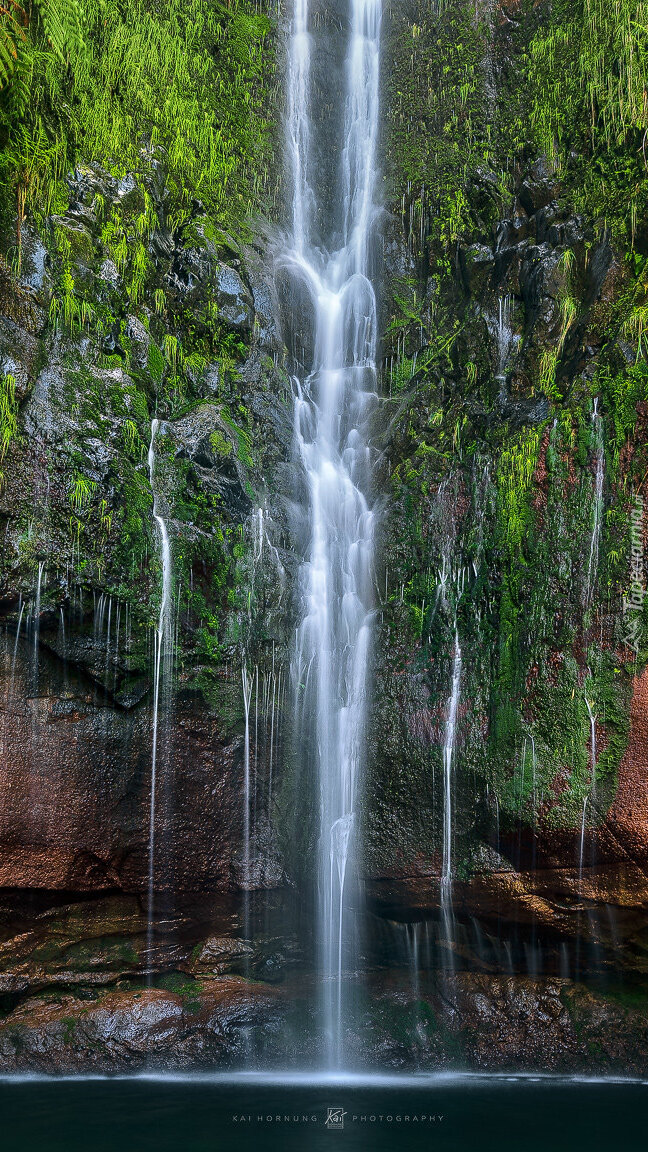 Edytor tapety: Wodospad na skalach w lesie
