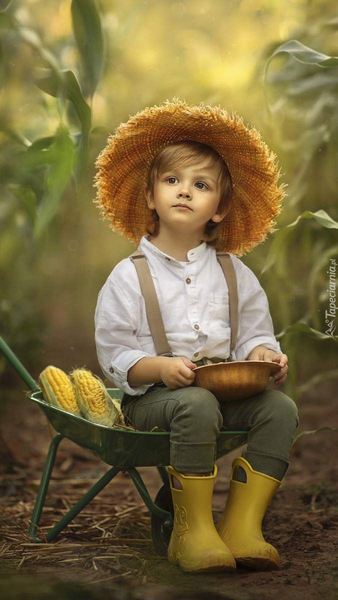 Edytor tapety: Chłopiec z kukurydzą na taczce