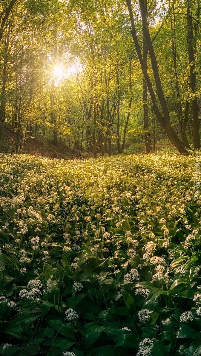 Edytor tapety: Czosnek niedźwiedzi w słonecznym lesie