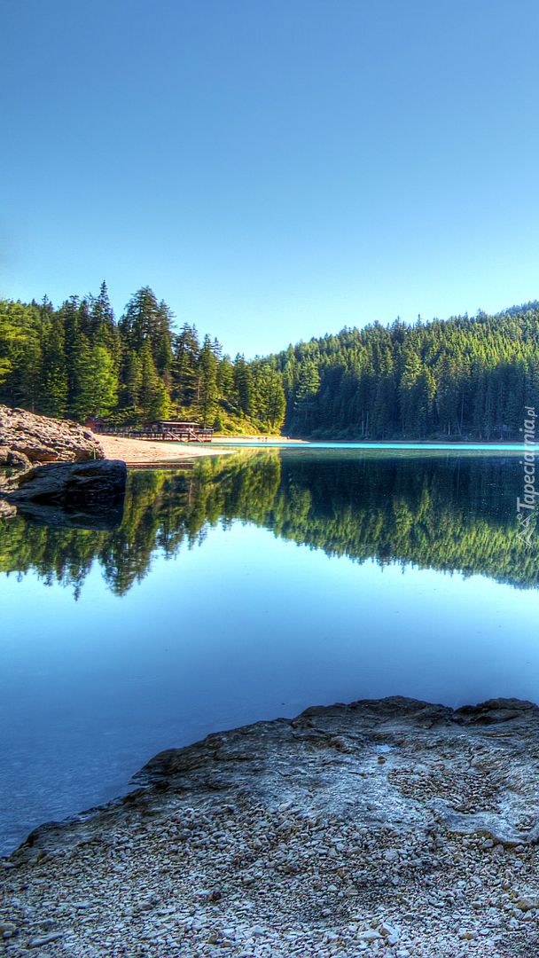 Edytor tapety: Zielone drzewa nad jeziorem