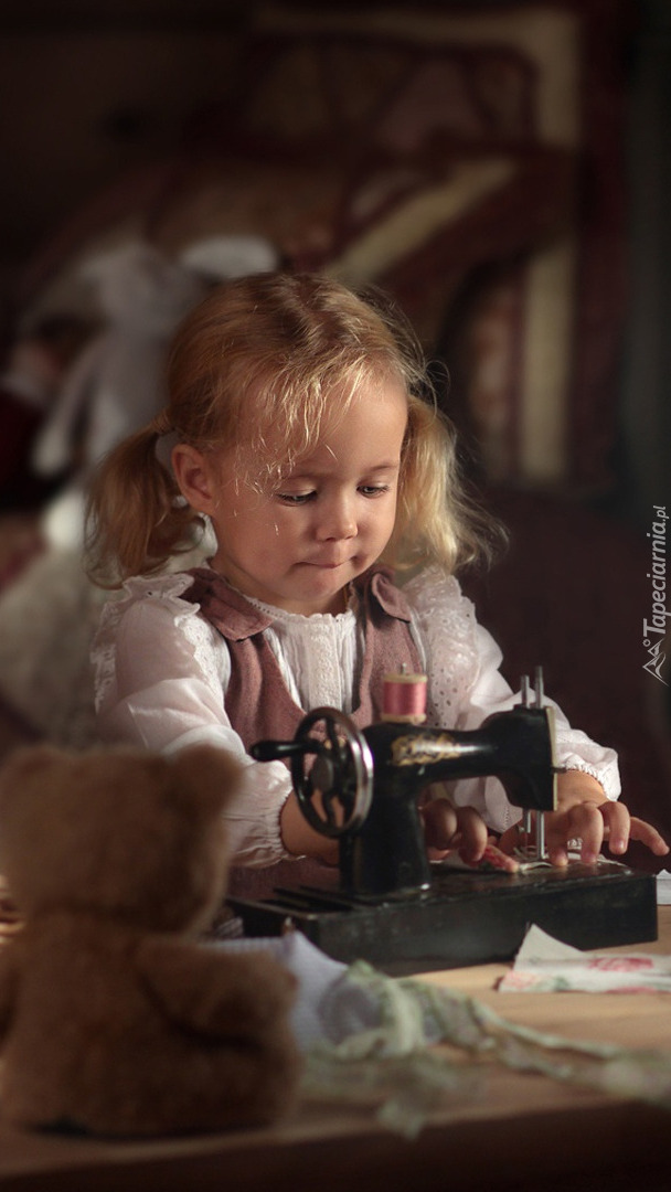 Edytor tapety: Dziewczynka przy maszynie do szycia