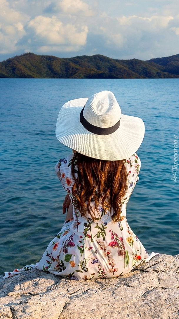 Edytor tapety: Dziewczyna w kapeluszu nad jeziorem