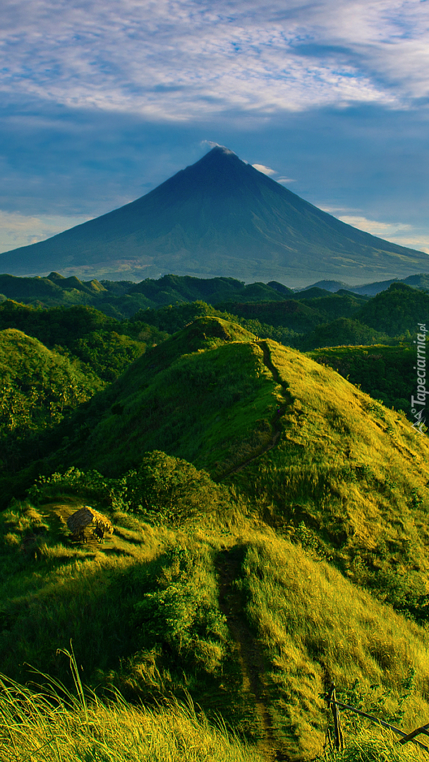 Edytor tapety: Zielone wzgórza na tle góry