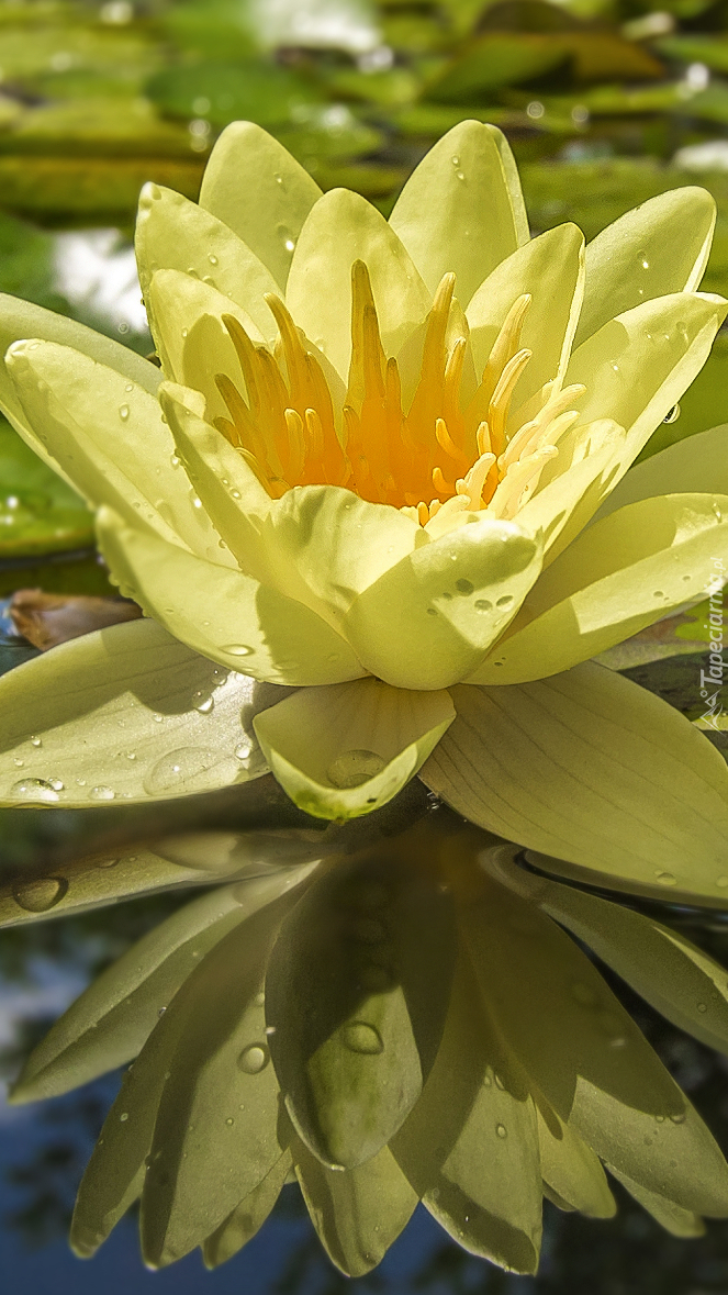 Edytor tapety: Krople na żółtej lilii wodnej