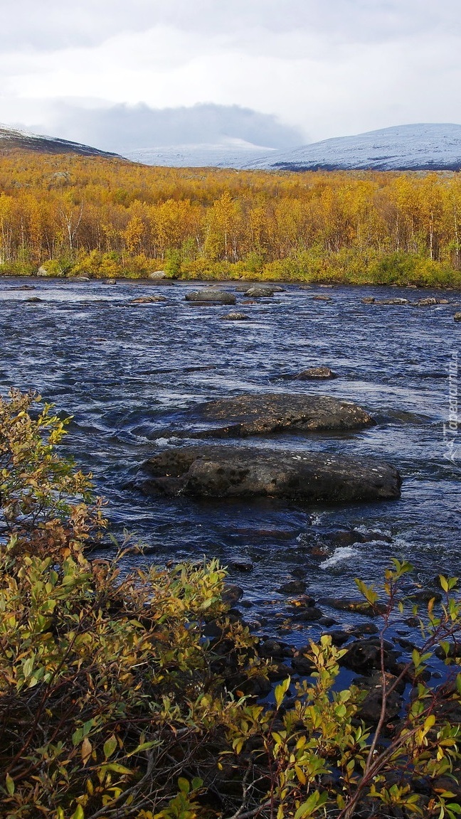 Edytor tapety: Pożółkłe drzewa nad rzeką