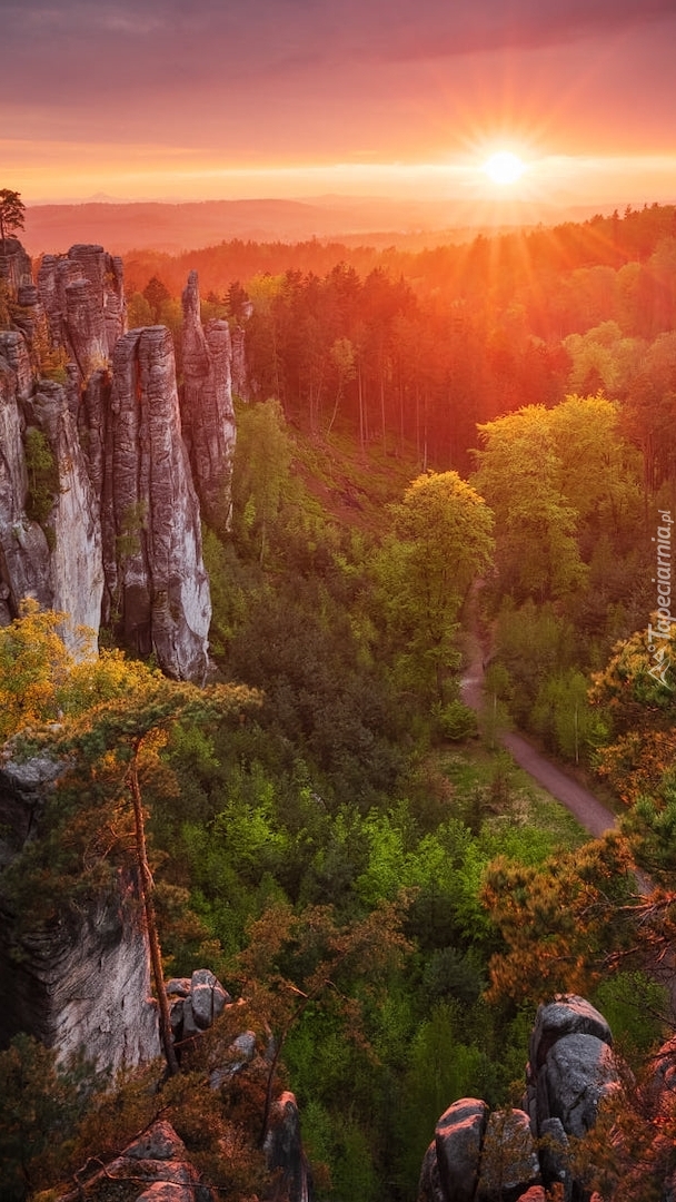 Edytor tapety: Góry i skały o zachodzie słońca