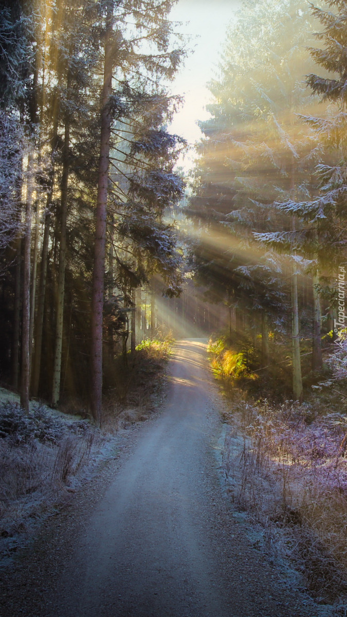 Edytor tapety: Ośnieżone drzewa przy leśnej drodze