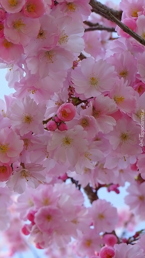 Edytor tapety: Gałązka kwitnącej wiśni japońskiej