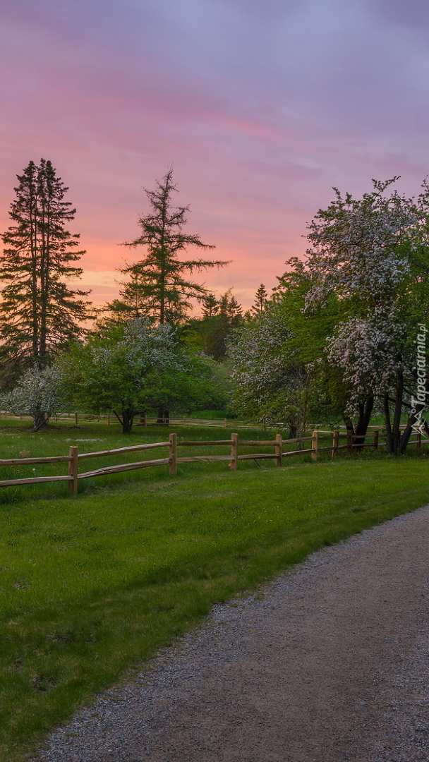 Edytor tapety: Drzewa przy ogrodzeniu na łące