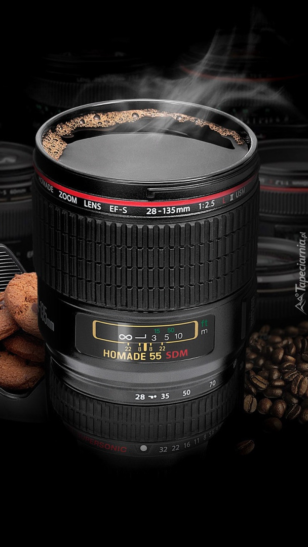Edytor tapety: Kubek kawy w kształcie obiektywu