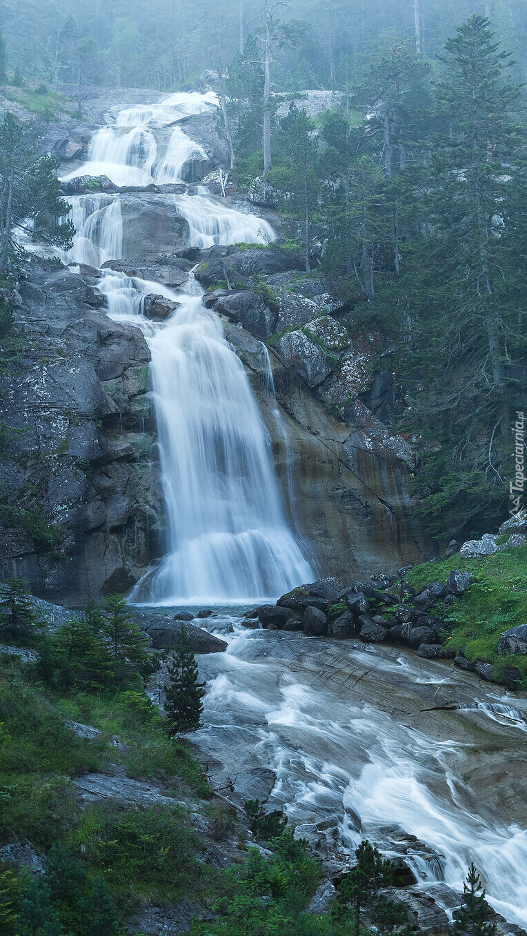Edytor tapety: Wodospad na skałach w lesie