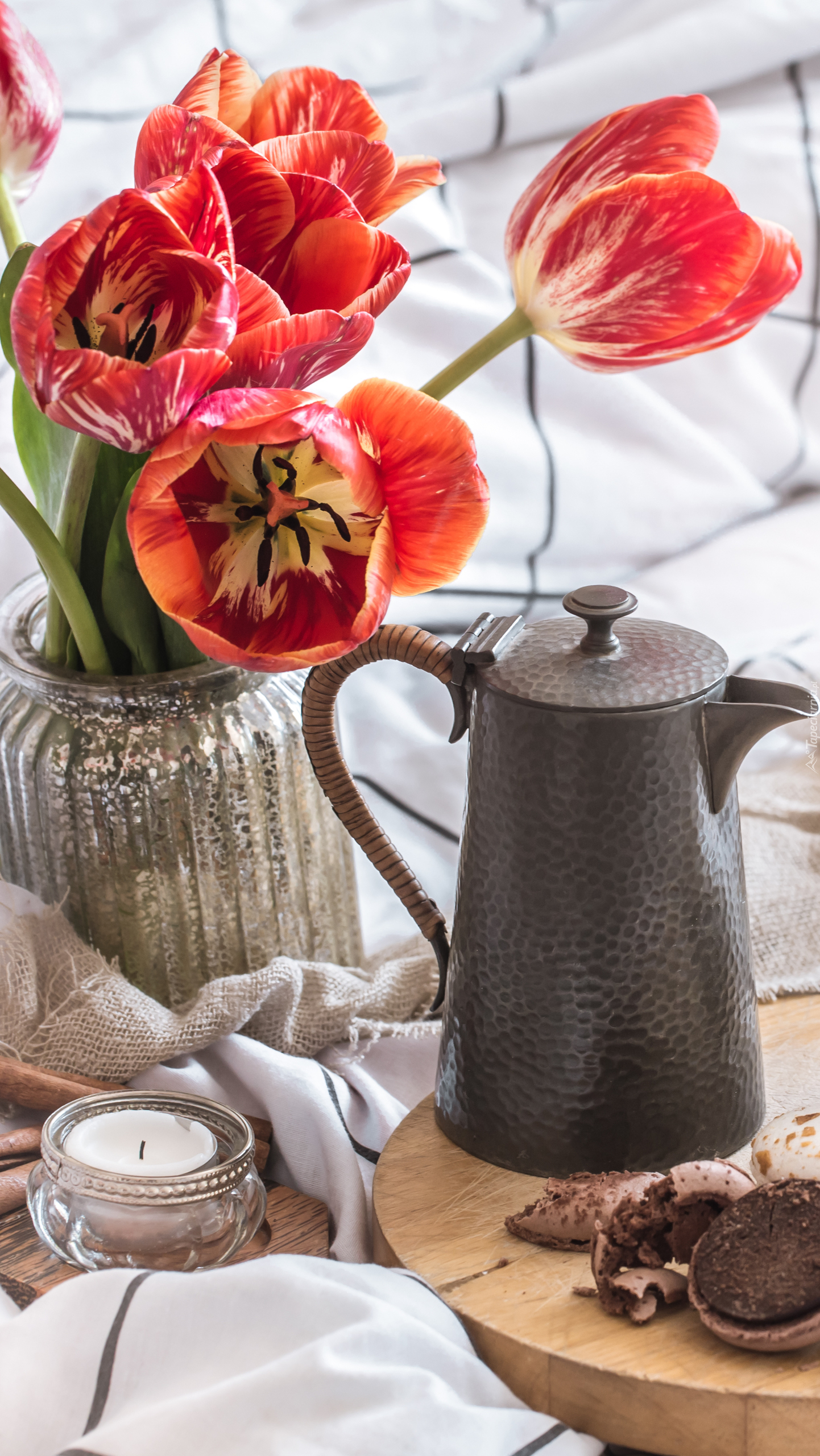 Edytor tapety: Rozkwitnięte tulipany w wazonie