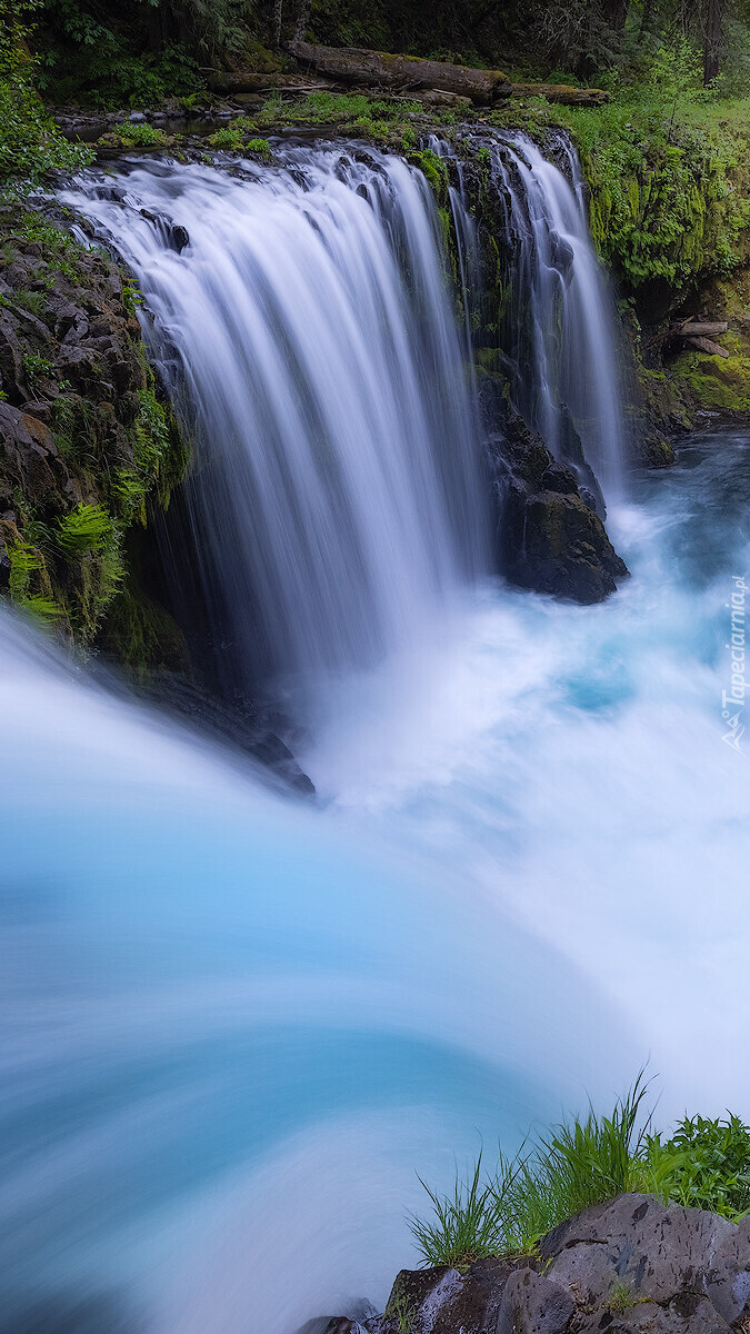 Edytor tapety: Zielone krzewy przy wodospadzie