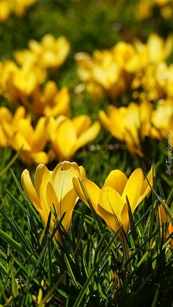 Edytor tapety: Żółte krokusy w trawie
