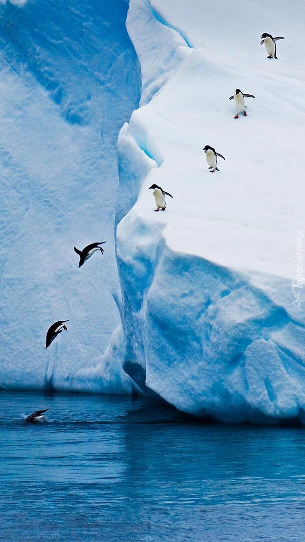 Edytor tapety: Pingwiny skaczące z góry lodowej