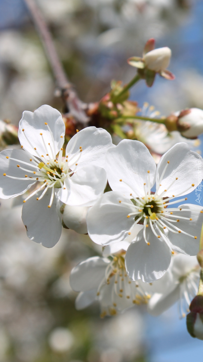 Edytor tapety: Białe kwiaty drzewa owocowego w zbliżeniu