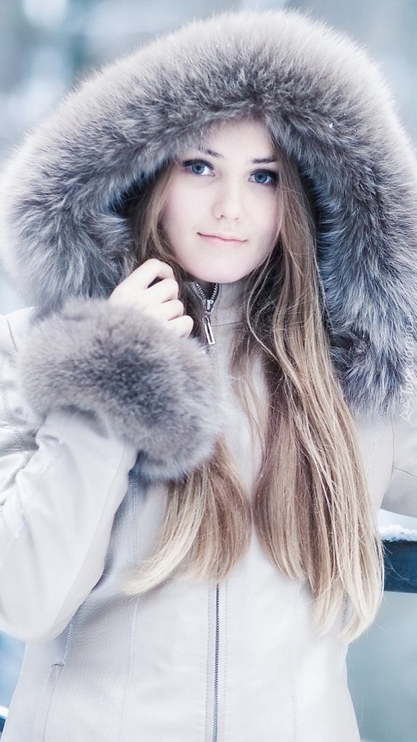 Edytor tapety: Dziewczyna w zimowym płaszczu z kapturem