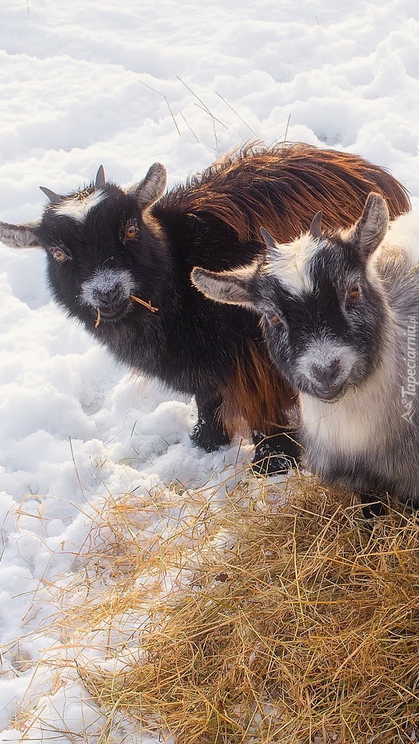 Edytor tapety: Dwie kozy przy sianie