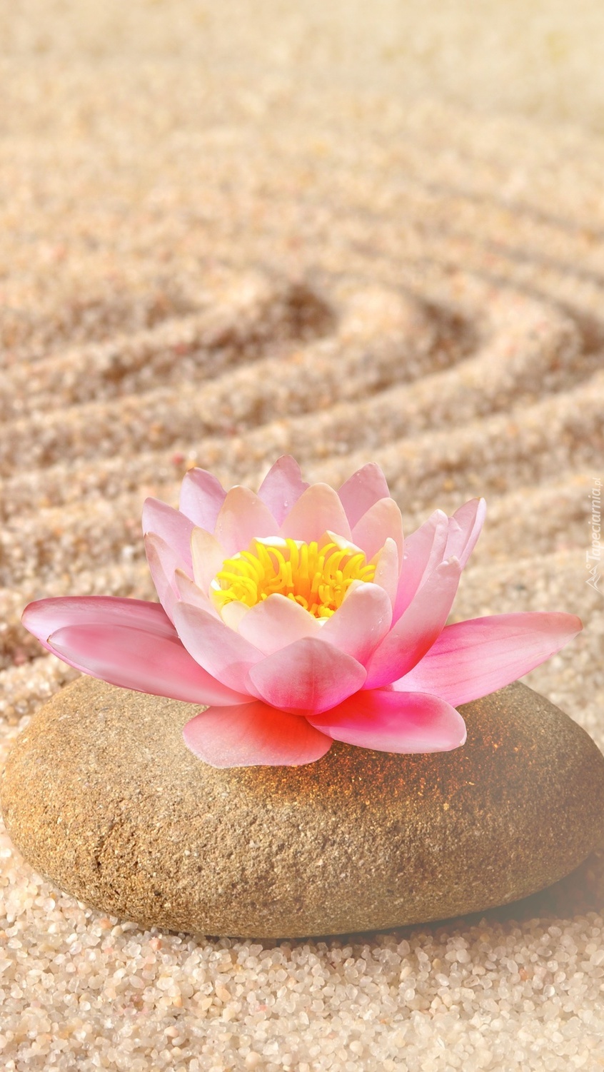 Edytor tapety: Rozkwitnięty lotos na kamieniu