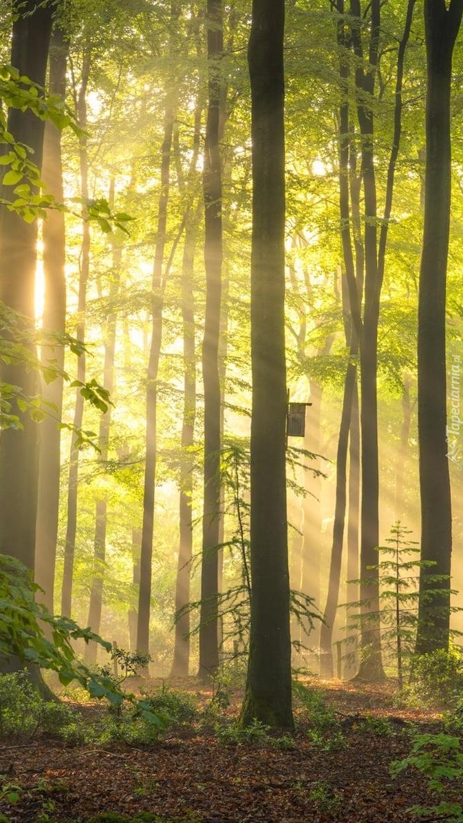 Edytor tapety: Budka lęgowa na drzewie w lesie