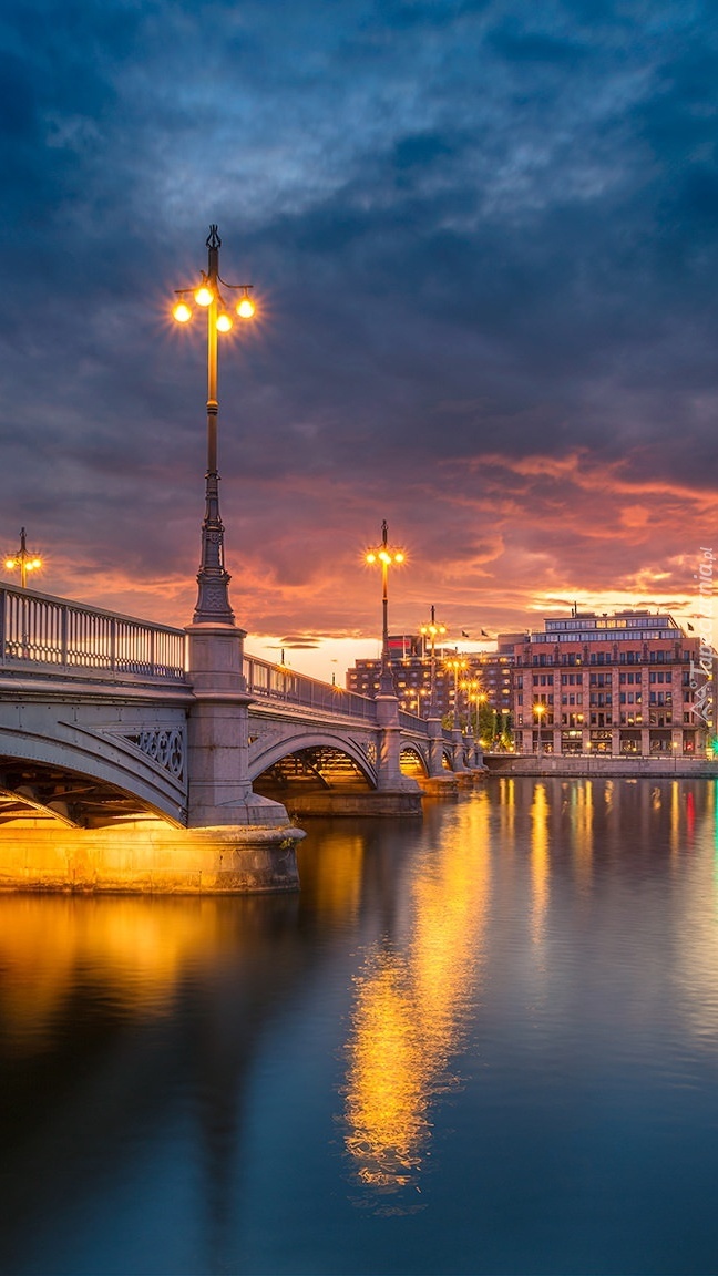 Edytor tapety: Zapalone latarnie na moście w Sztokholmie
