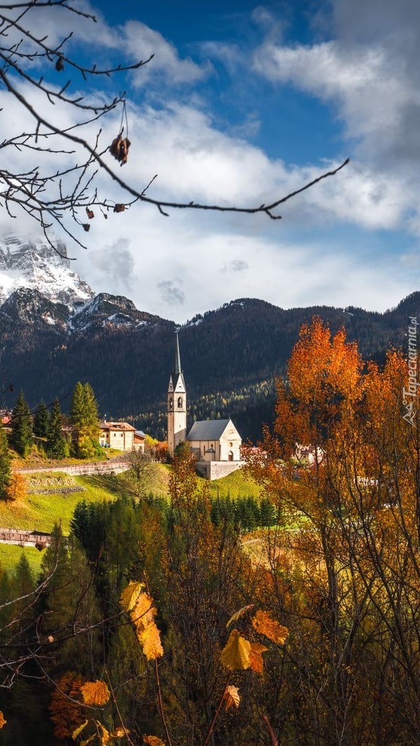 Edytor tapety: Kościół na tle Dolomitów