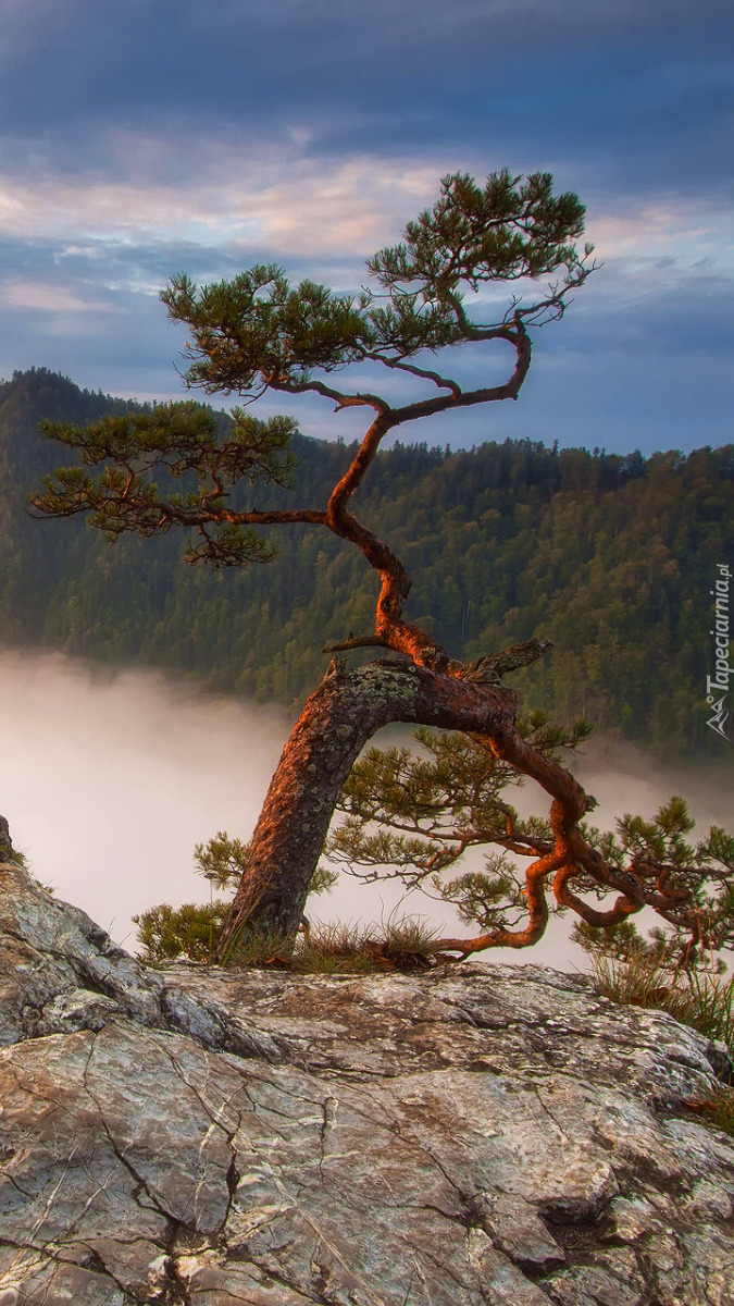 Edytor tapety: Sosna na skałach