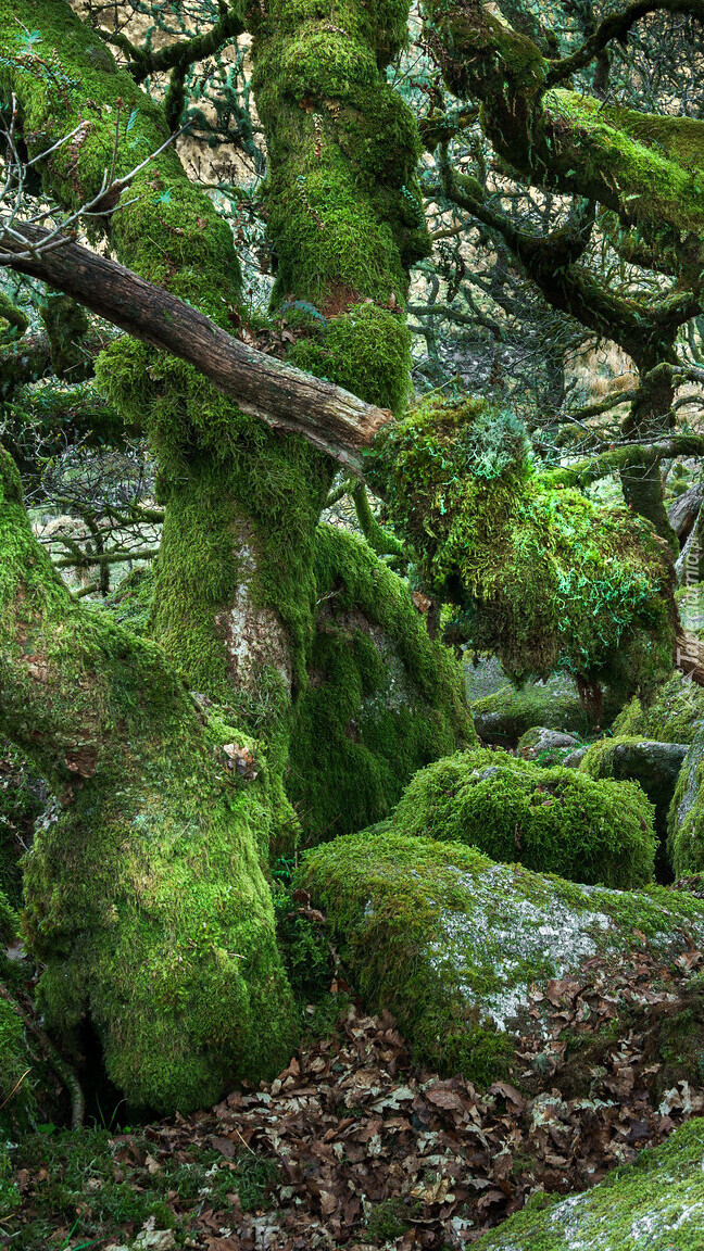 Edytor tapety: Omszałe kamienie i drzewa