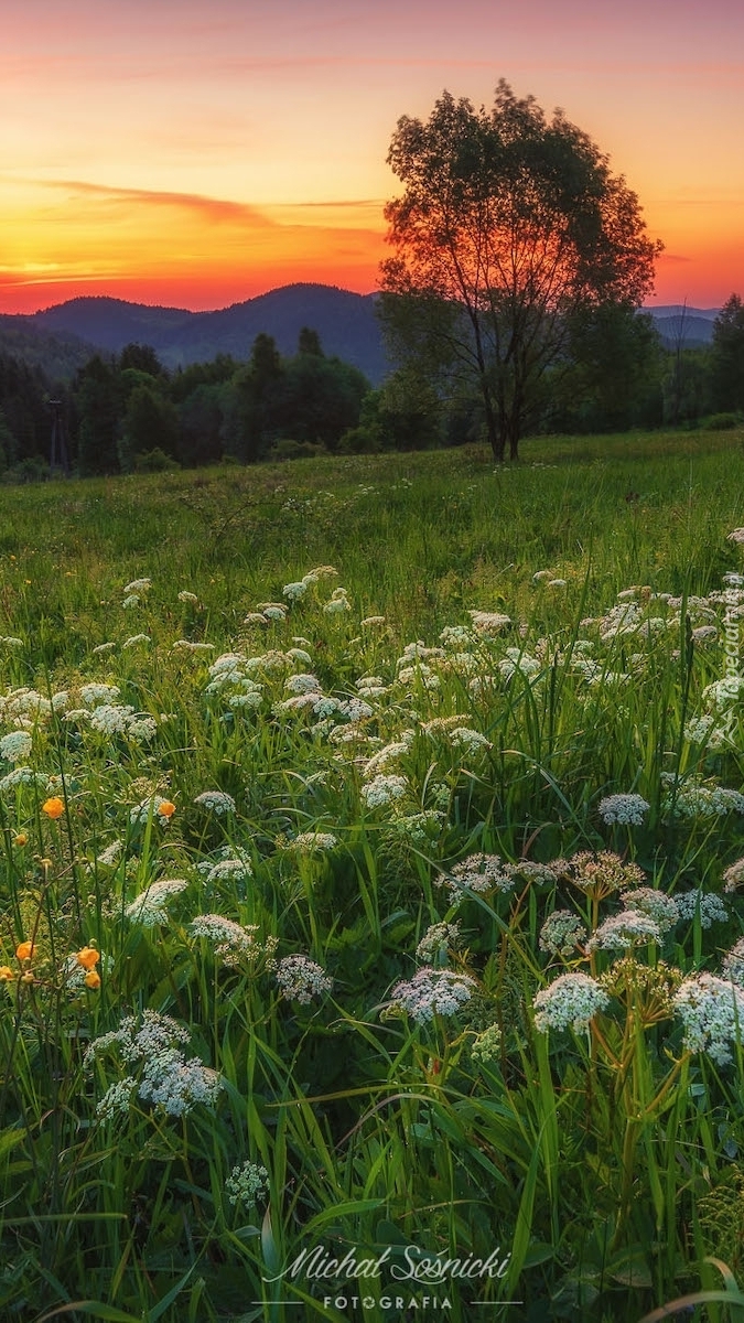 Edytor tapety: Drzewo na łące w Beskidach