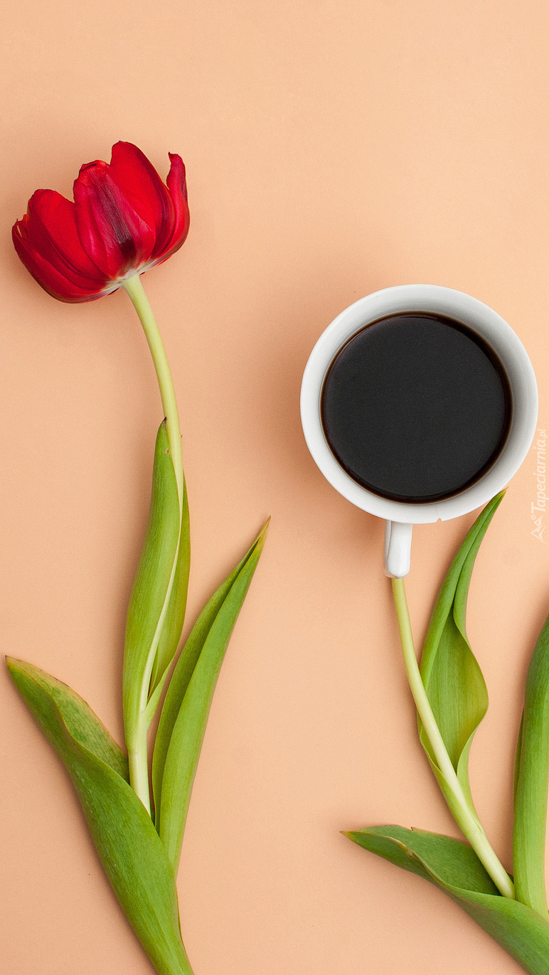 Edytor tapety: Tulipan obok kawy