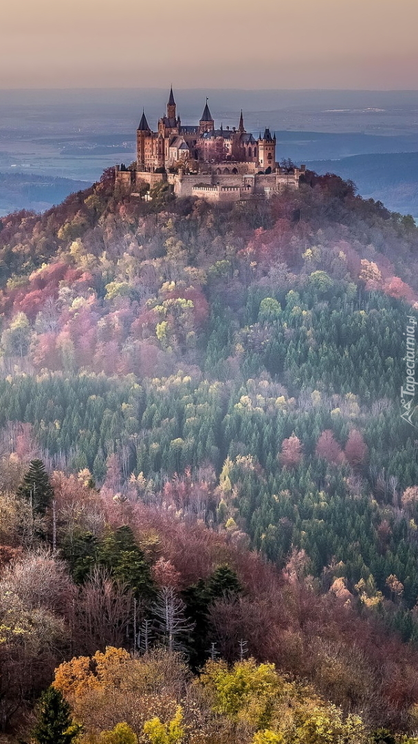 Edytor tapety: Zamek Hohenzollern na zalesionej górze