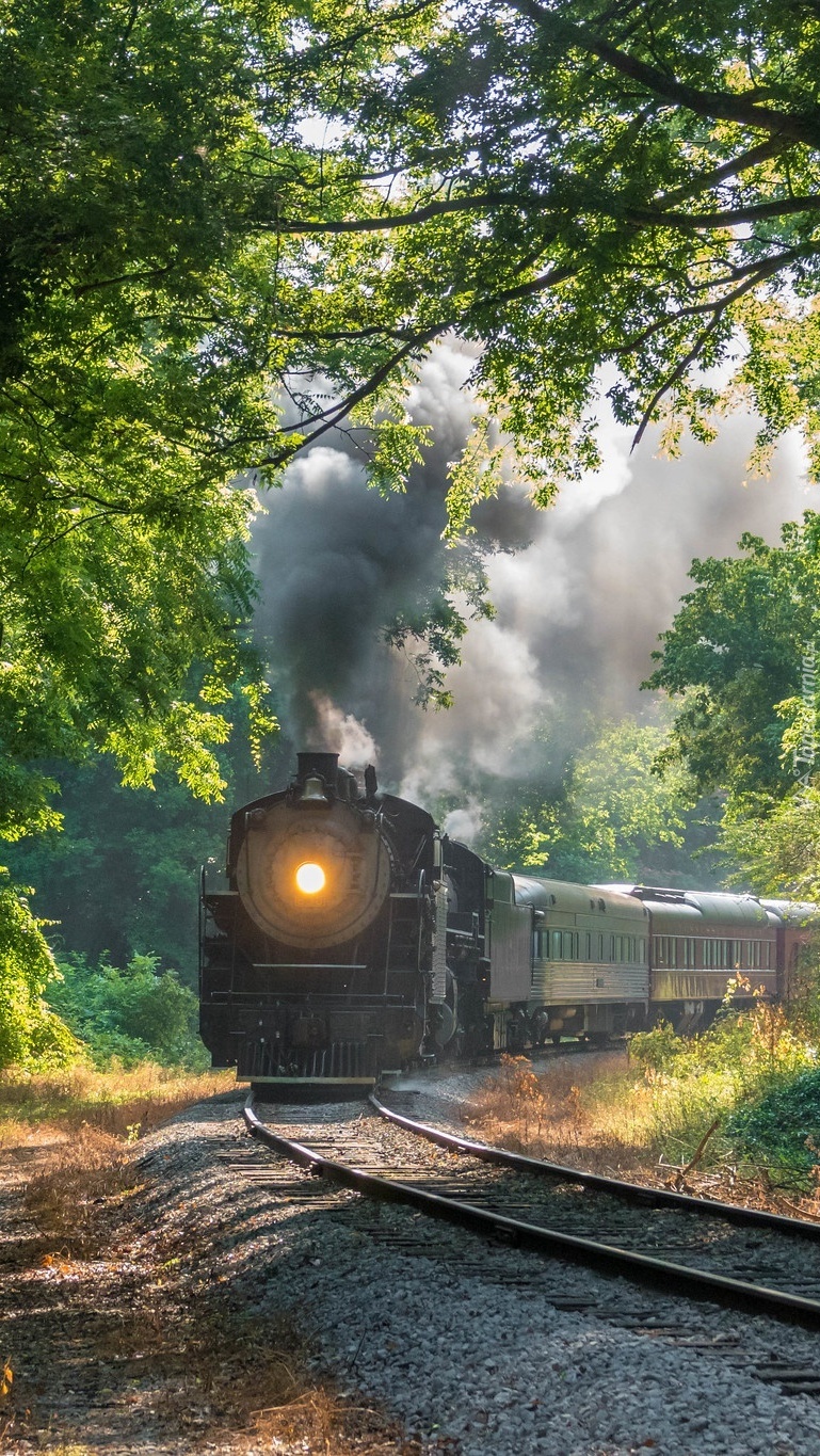 Edytor tapety: Pociąg parowy w lesie