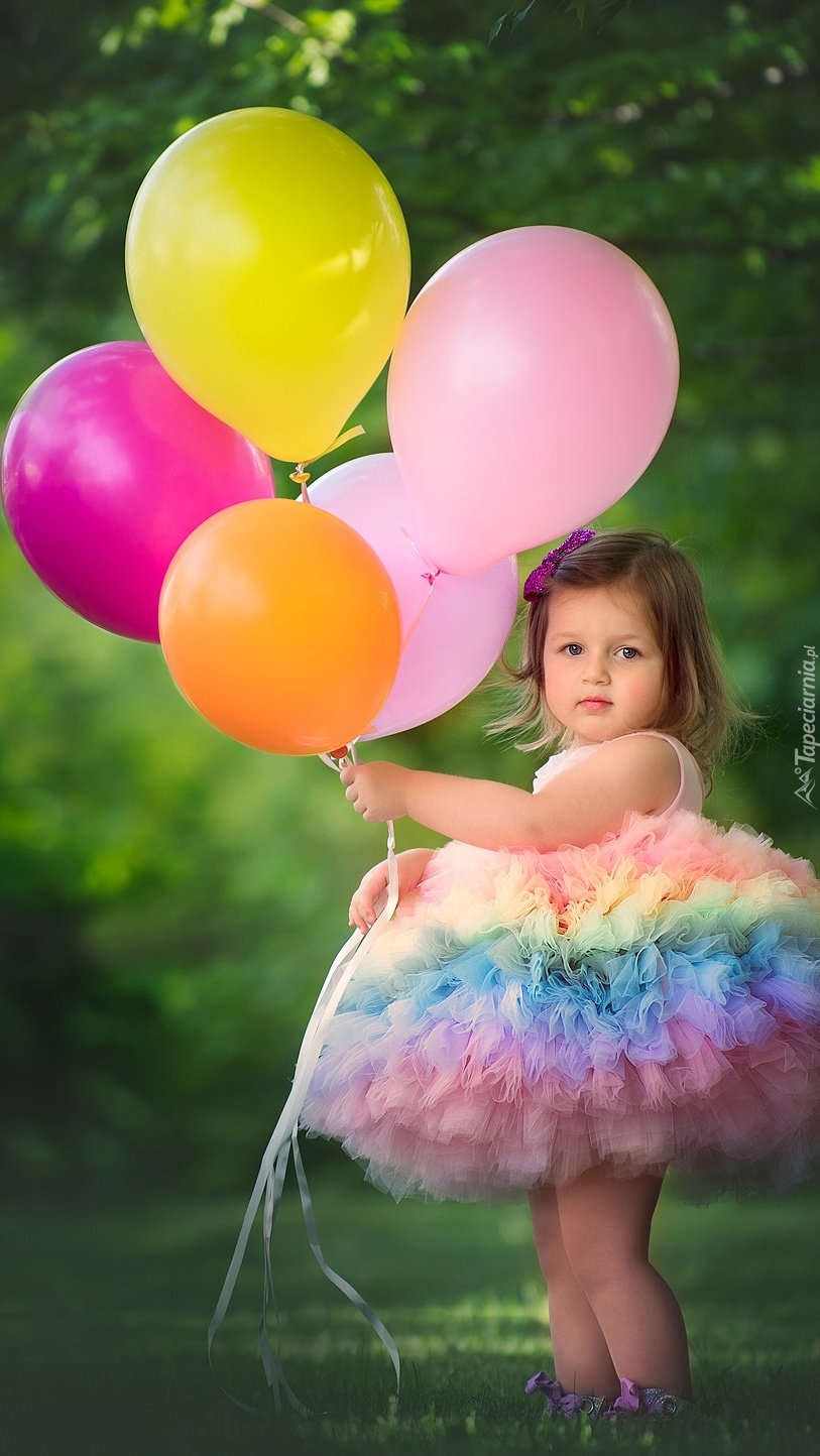 Edytor tapety: Dziewczynka z kolorowymi balonami