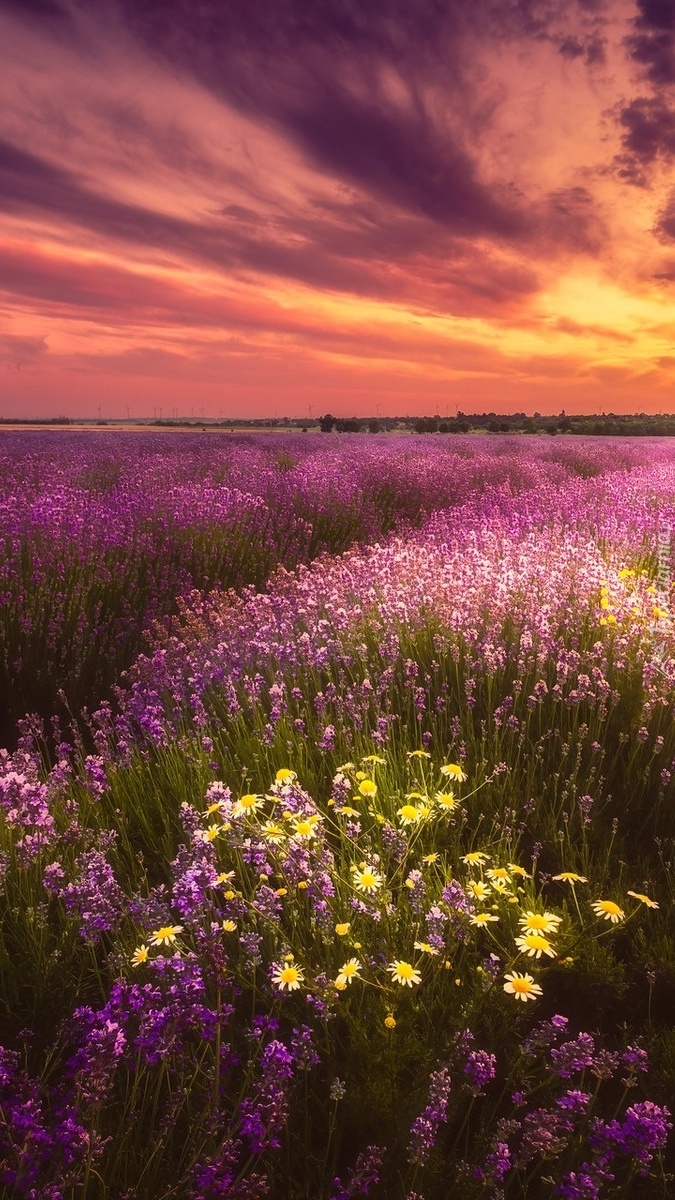 Edytor tapety: Pole lawendy w blasku zachodzącego słońca