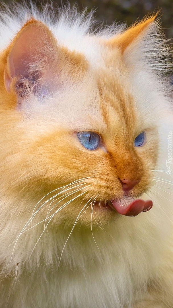Edytor tapety: Rudawy kot z wystawionym językiem