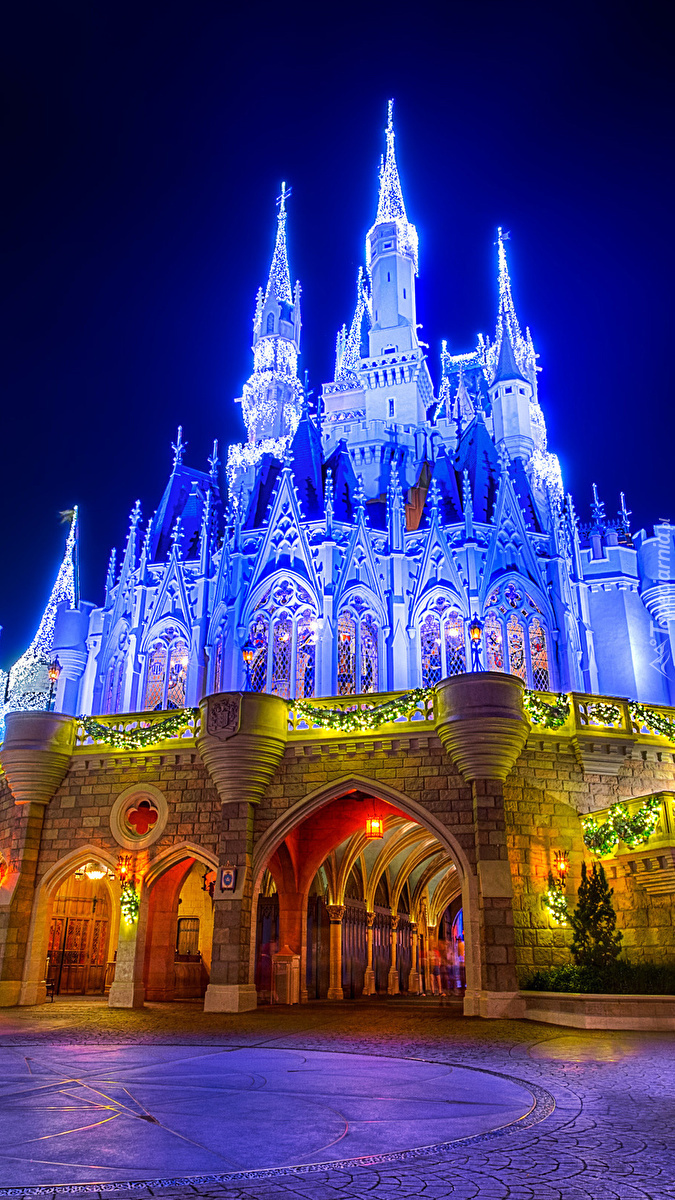 Edytor tapety: Oświetlony zamek Cinderella Castle