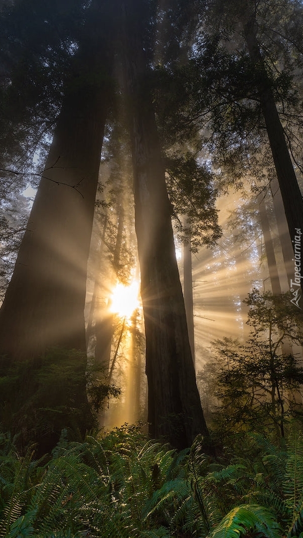 Edytor tapety: Przebijające światło pomiędzy drzewami