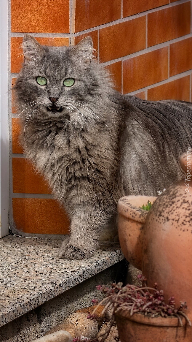 Edytor tapety: Szary długowłosy kot