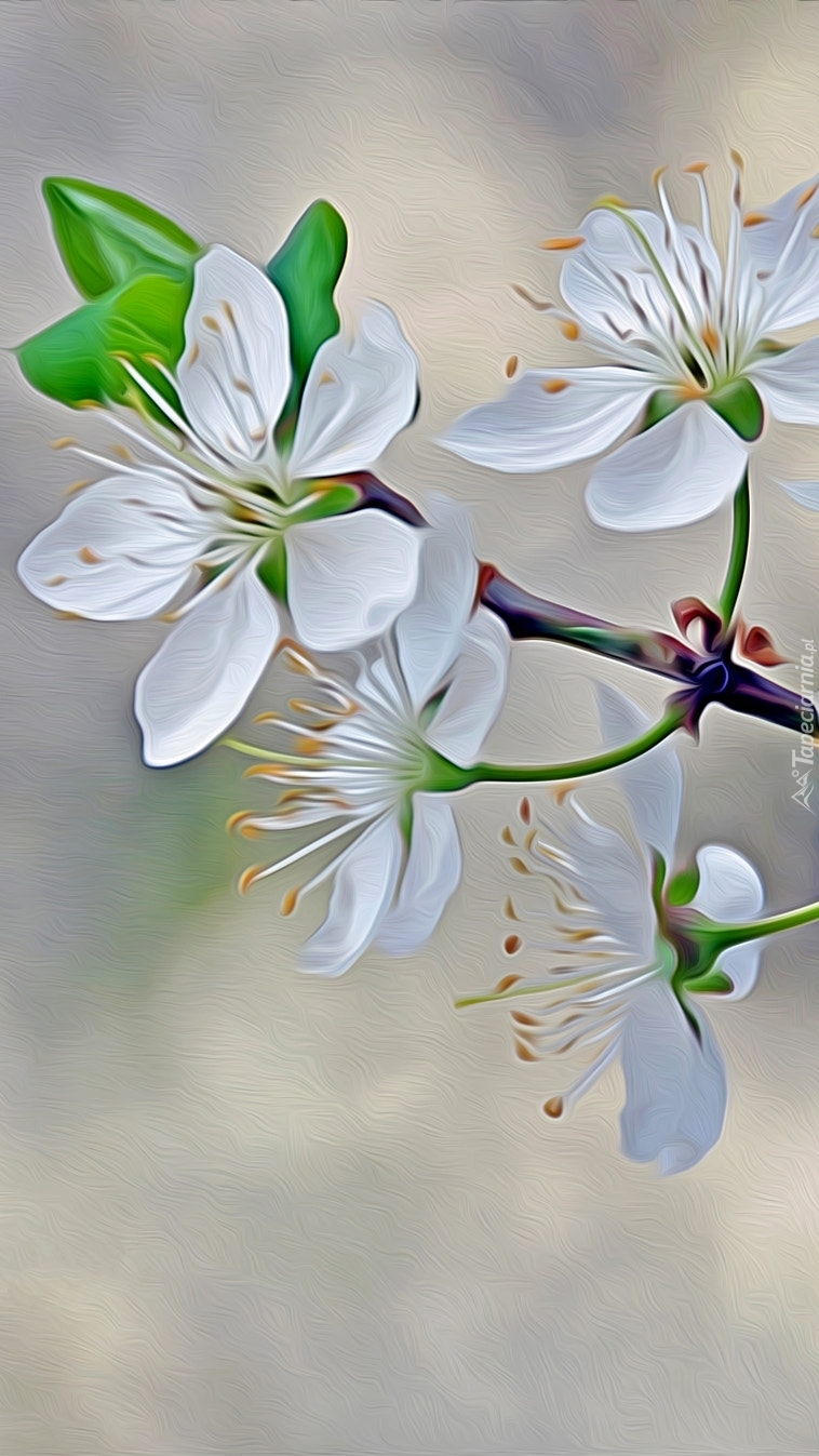 Edytor tapety: Białe kwiaty drzewa owocowego