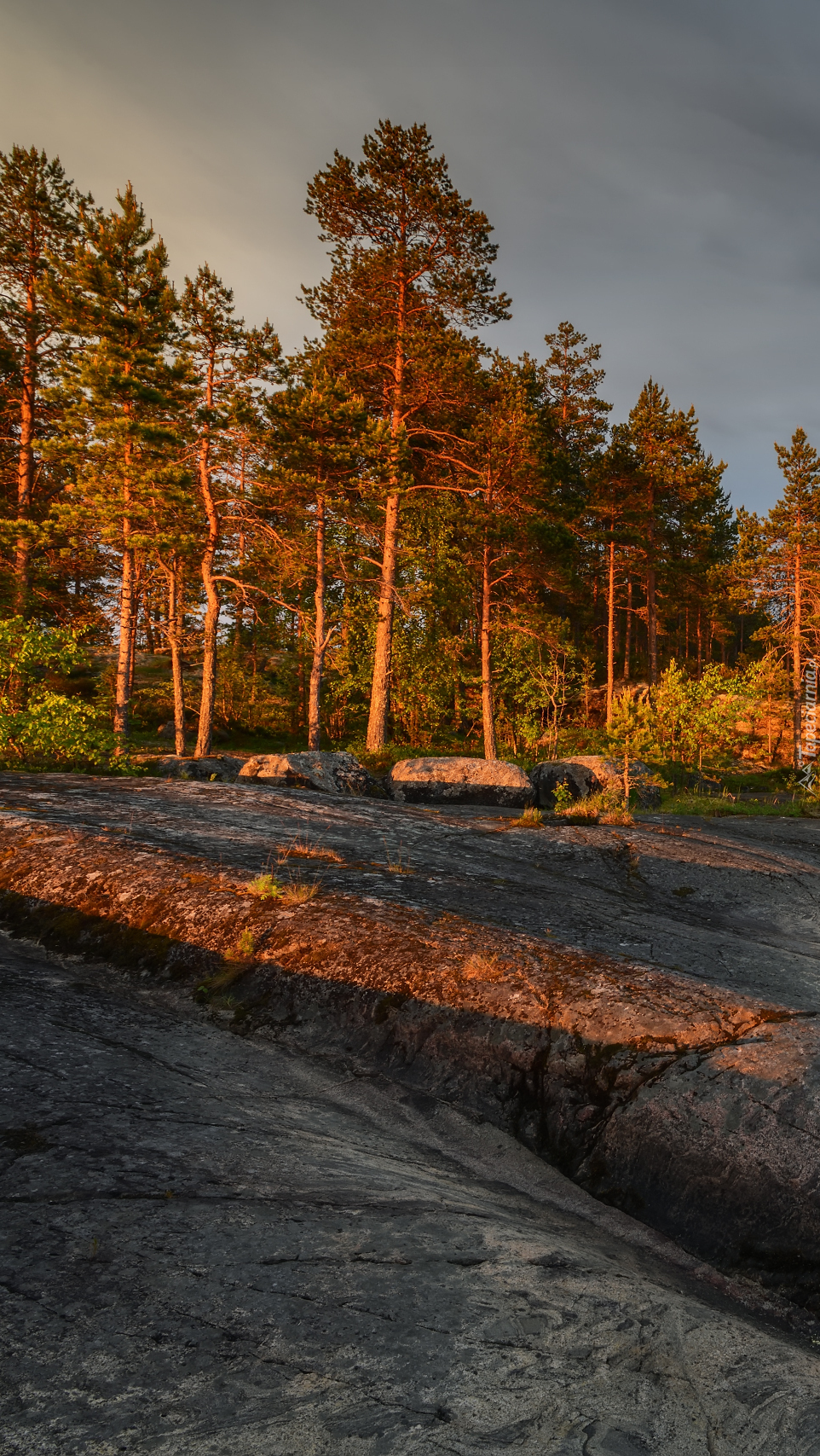 Edytor tapety: Drzewa na skałach w słońcu