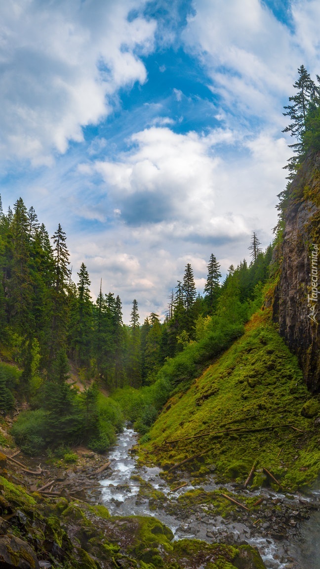 Edytor tapety: Drzewa nad górską rzeką