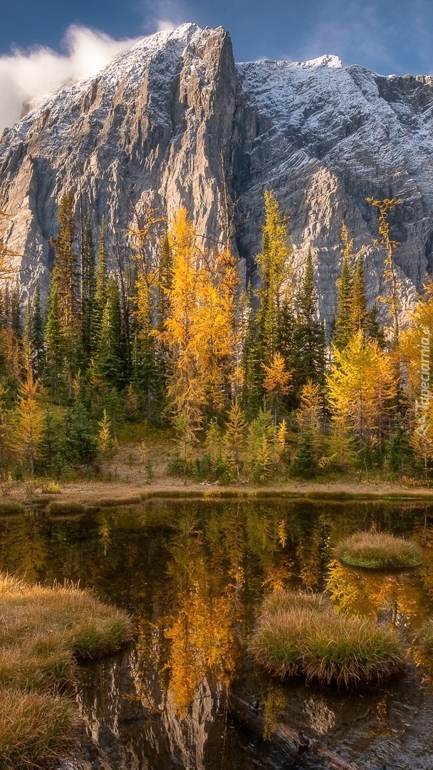 Edytor tapety: Jesienne drzewa nad górskim stawem