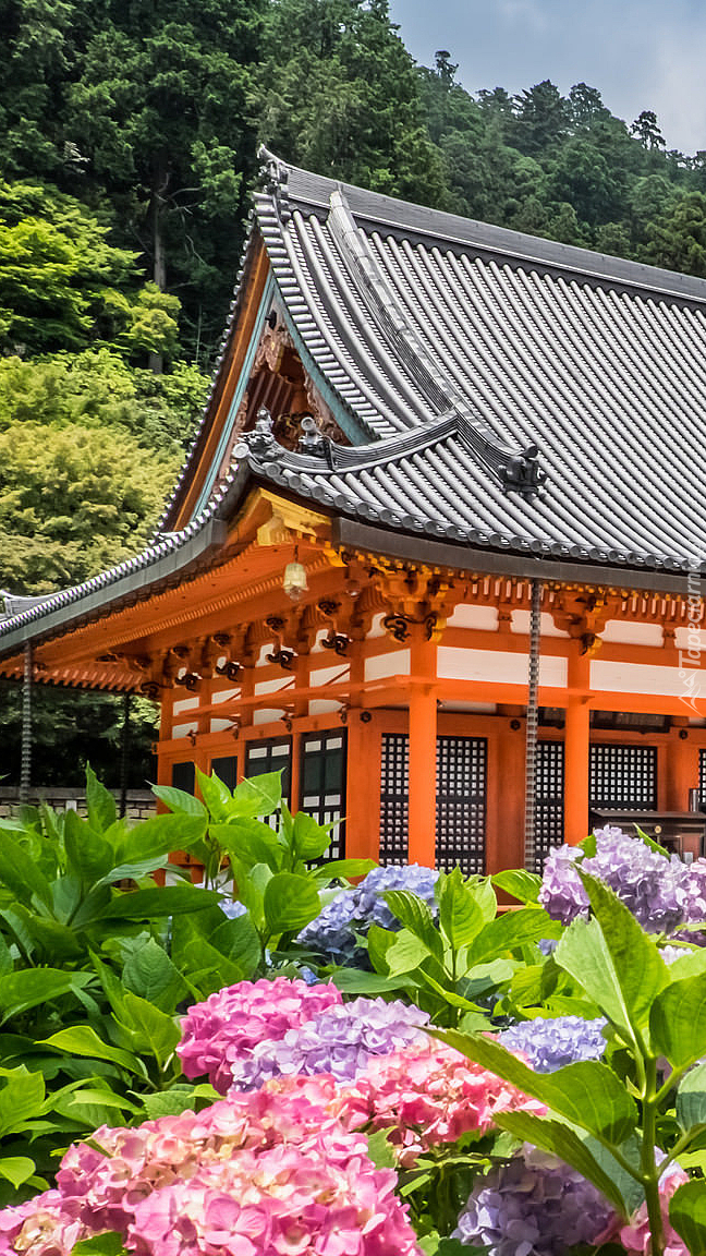 Edytor tapety: Hortensje przed świątynią Katsuo-ji
