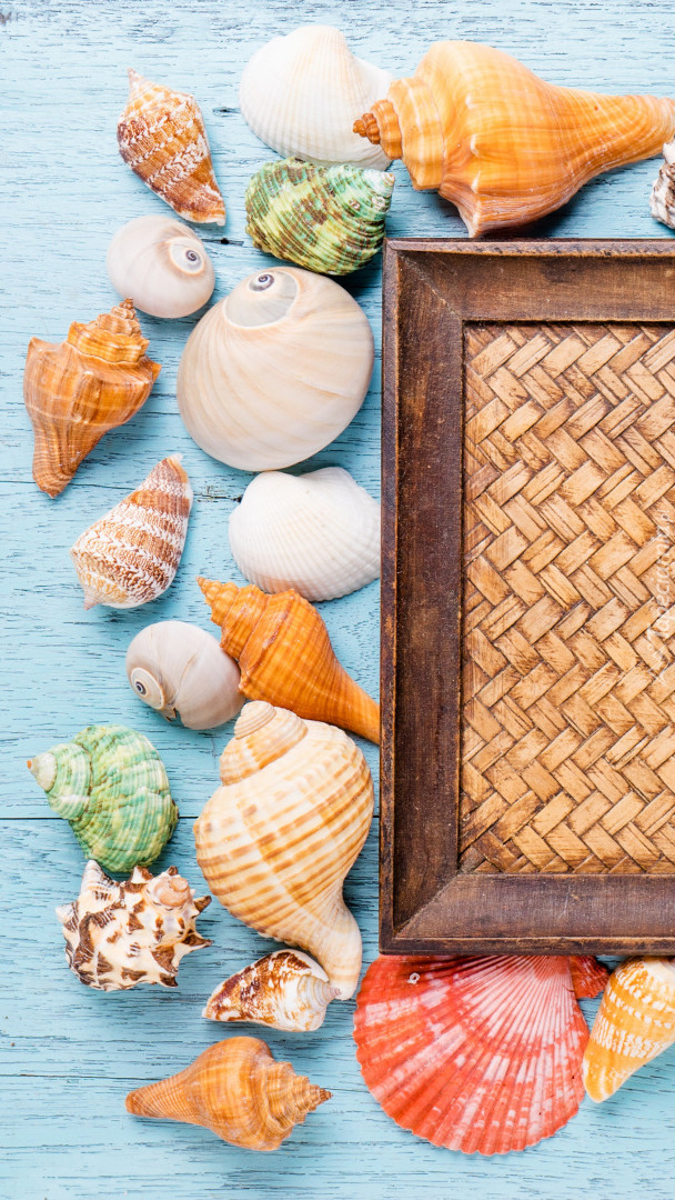 Edytor tapety: Muszelki obok ramki