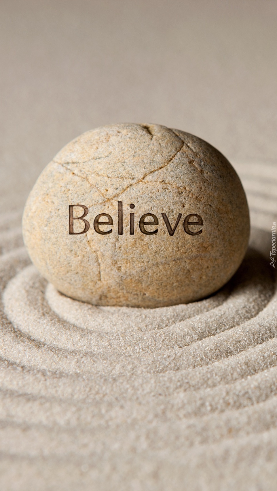Edytor tapety: Napis Believe na kamieniu