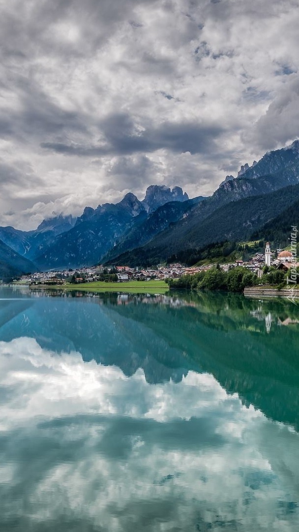 Edytor tapety: Ciemne chmury nad górskim miasteczkiem