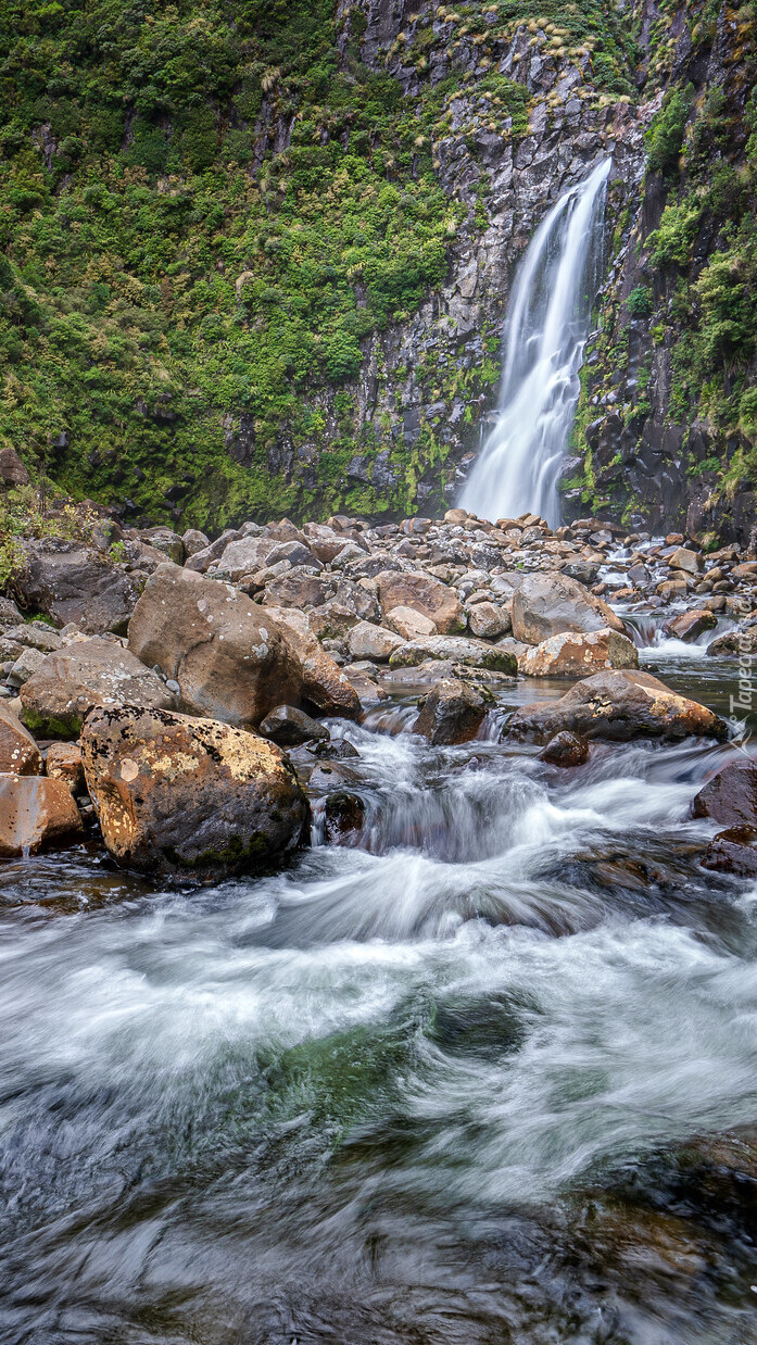 Edytor tapety: Porośnięte skały przy wodospadzie