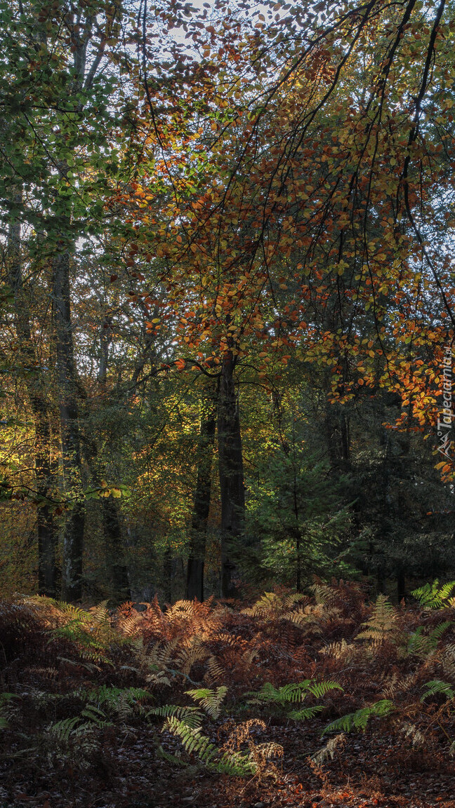 Edytor tapety: Paprocie w lesie pod drzewami